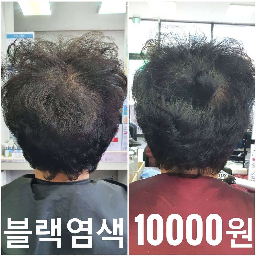 사진에 소개된 고객님의 머리길이 정도라면 10000원으로 블랙염색 새치염색